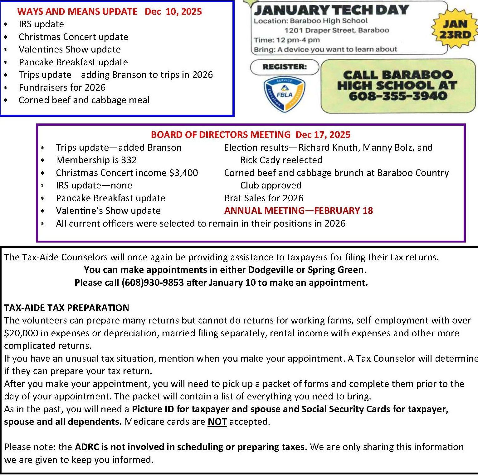 BASCO bases its closing on the school district. When Baraboo Schools are closed, BASCO will be closed.